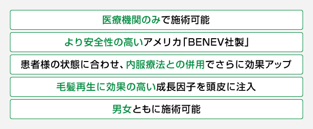 名古屋中央クリニック 名古屋AGA・薄毛治療どっとこむ ホーム > 治療メニュー / 毛髪再生治療(BENEV・成長因子注入)