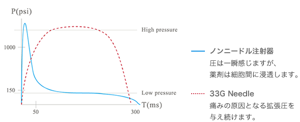33G針とノンニードル注射器の拡張圧の違い